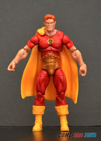 It took me awhile to figure out if this figure is an all new sculpt. It finally hit me that he's on a retooled Cable's body. He's got a new left arm and boots. The new boots are shorter so he's shorter than Cable as you'll see further down. The gold portion of his costume was sculpted on and I like that the studs are present on it. He's got a great head sculpt. His hair has nice detail. The eyes were painted looking upwards unfortunately. The cape is much better looking than the almost straight one on the Marvel Legends figure. It's removable. There are two holes in his back where it attaches to. It doesn't stay on well and falls off easily when you tilt him backwards. He's got excellent paint application. The shiny gold on his logo and lower torso is very smooth. The outline of his logo is clean and sharp.